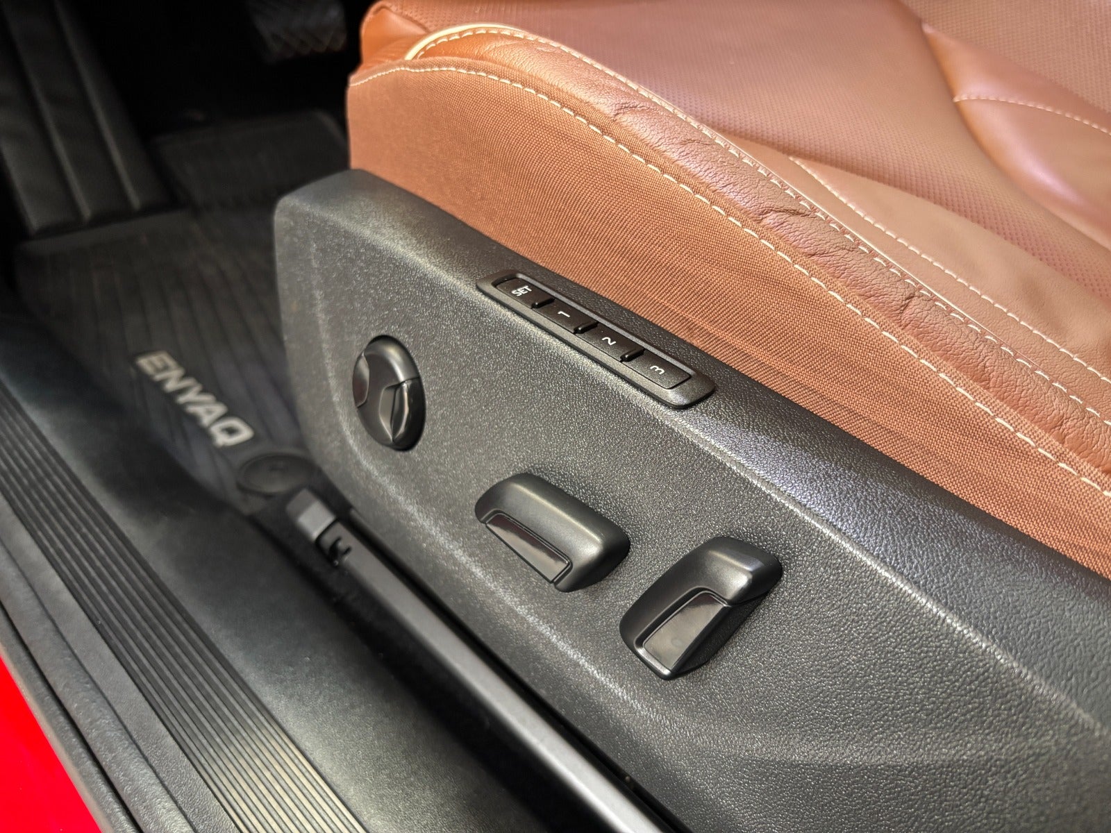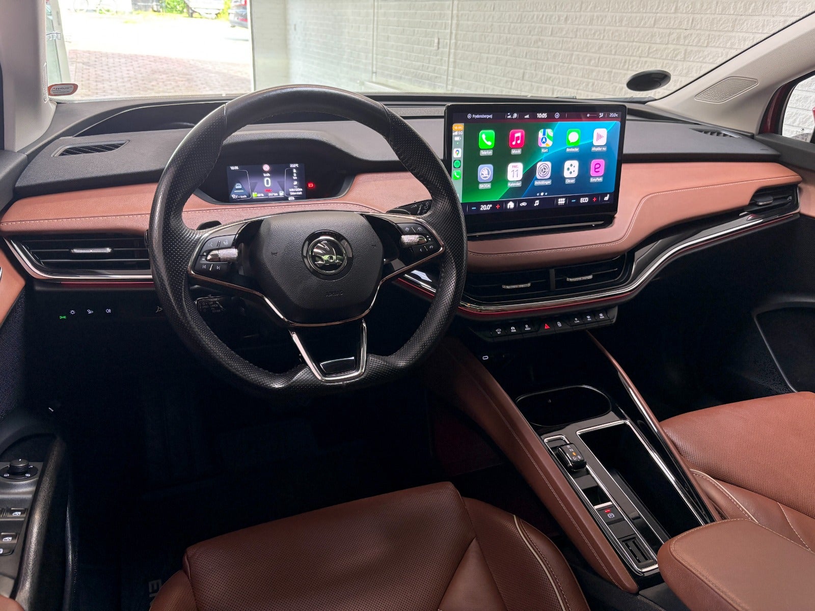 ✅ HELT UNIK SAMMENSAT SKODA ENYAQ I FARVEN VELVET RED MED COGNAC FARVET LÆDERKABNE